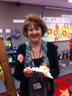 And finally, here’s Mrs. H. She’s a fantastic teacher- and I love her. She was so excited to get the cupcake! I had to snap a photo of her beautiful smile.