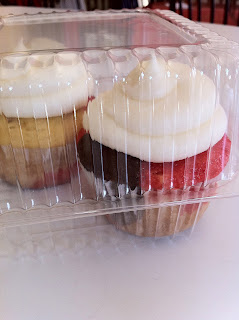 I used approx. 1/2 box of cake mix for each flavor. I got 24 beautiful cupcakes.