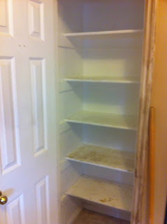 I pulled everything out, and this is what I got. Old, dirty shelving. You know how one project turns into another?